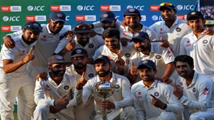 Indian coach Anil Kumble and his entire staff erupted in joy in the dressing room as Ashwin fittingly took the last wicket with a return catch of Trent Boult, triggering wild celebrations on the field as well. It was also Kumble’s first series win at home after the success in the West Indies.