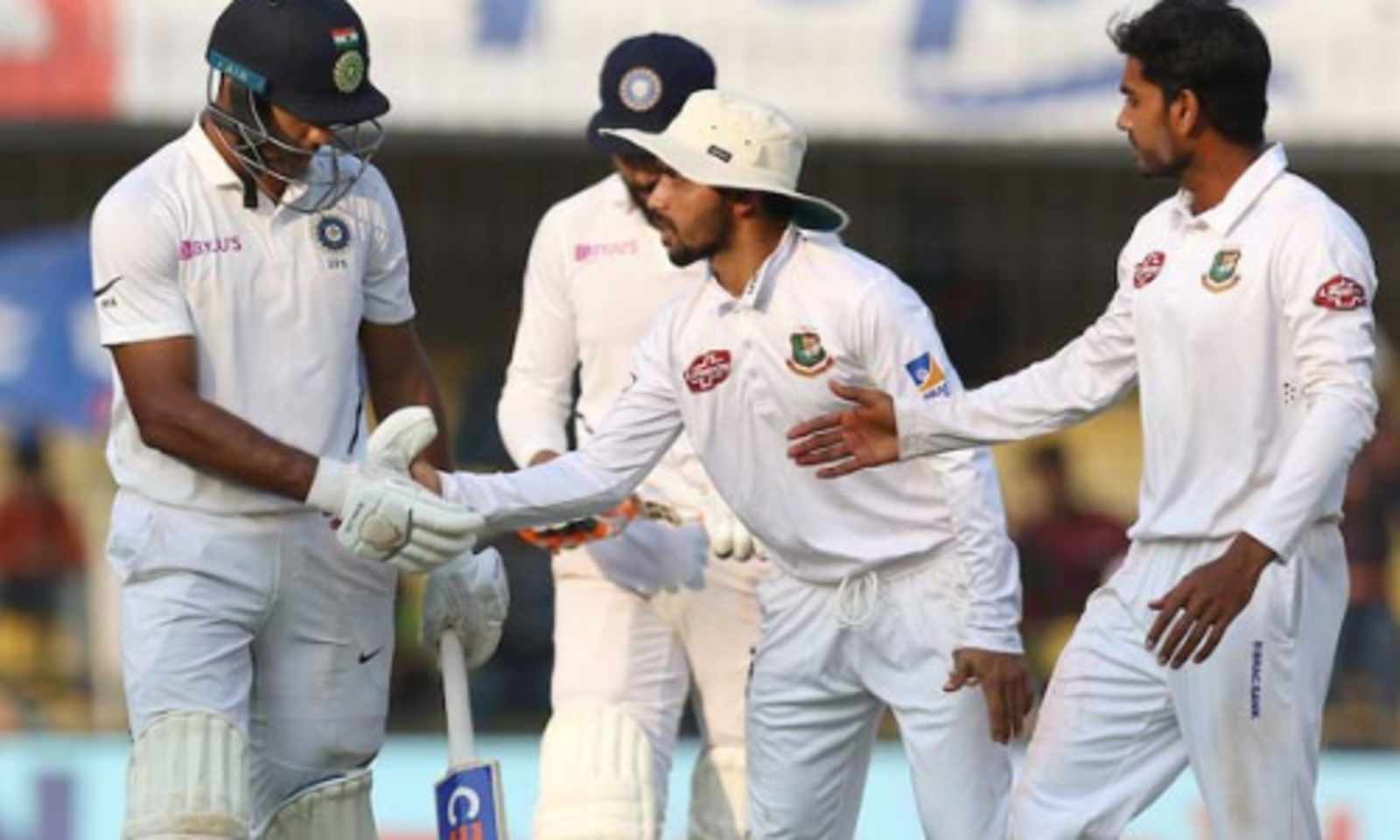 India 1st innings: 493 for 6 declared in 114 overs (Mayank Agarwal 243, Ajinkya Rahane 86, Cheteshwar Pujara 54; Abu Jayed 4/108). (AGENCIES)