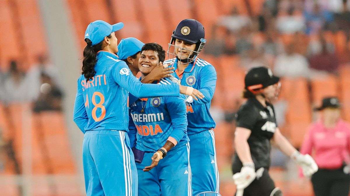 Radha Yadav returned with 3/35, while Saima Thakor bagged 2/26.