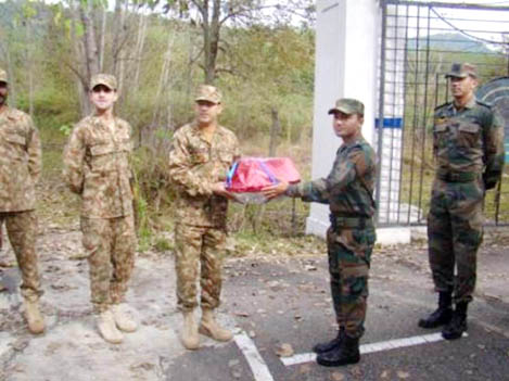 Official sources told the Excelsior that the delegations of Army officials from India and Pakistan met at Chakan-Da-Bagh cross-LoC point in Poonch sector at 10.20 am yesterday and had free inter-action while exchanging sweets and fruits to celebrate Diwali festival.
