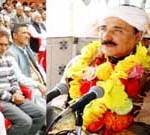 SRINAGAR, Apr 7: A warm welcome was given to Mubarak Gul by his party workers on his arrival at Church Lane here today as a gesture on being elevated as Speaker, Legislative Assembly by the Chief Minister, Omar Abdullah recently.
