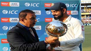 The mace was presented by former India captain and ICC Cricket Hall of Famer Sunil Gavaskar at a ceremony following the conclusion of the third and final Test against New Zealand in Indore after the home team completed a 3-0 whitewash.