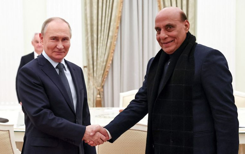 NEW DELHI, Dec 10: Defence Minister Rajnath Singh met Russian President Vladimir Putin in Moscow on Tuesday and the two leaders noted that the India-Russia partnership holds immense potential and combined efforts will pave the way for “remarkable outcomes”.