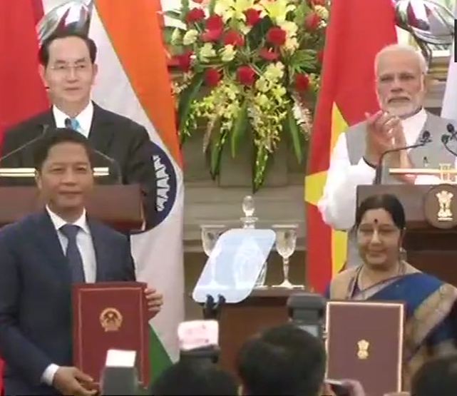 India, Vietnam sign 3 pacts including on nuclear cooperation By Daily Excelsior - March 3, 2018 Share FacebookTwitterWhatsAppPinterestLinkedinCopy URLTelegramEmailTumblrReddItPrintKoo NEW DELHI: India, Vietnam sign 3 pacts including on nuclear cooperation after talks between PM Narendra Modi and Vietnamese President Tran Dai Quang. (agencies) Follow our WhatsApp channel