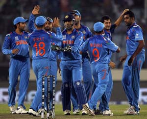 MIRPUR, Mar 30: India continued their dream run in the ICC World T20 as they pounded a listless Australia by a whopping 73-run margin to emerge group 2 champions with an all-win record, here today.