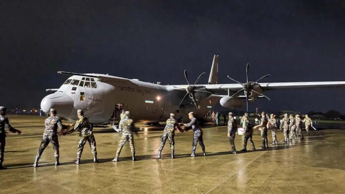 The C130 aircraft carrying essential food items and sanitary supplies reached Colombo’s Bandaranaike International Airport airport at around 1.30 am and was received by the Indian High Commission officials and Sri Lanka Air Force officers.