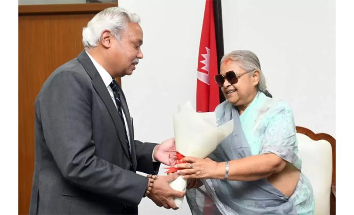 KATHMANDU, Sep 16: Indian Ambassador Naveen Srivastava on Tuesday called on Nepal’s newly-appointed Prime Minister Sushila Karki at her office in Singha Durbar here and conveyed Prime Minister Narendra Modi’s congratulatory message to her.