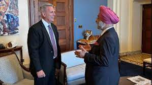 WASHINGTON, Apr 19: India’s Ambassador to the US Taranjit Singh Sandhu Tuesday met the Speaker of the US House of Representatives Kevin McCarthy and had a discussion on further strengthening the India-US partnership.