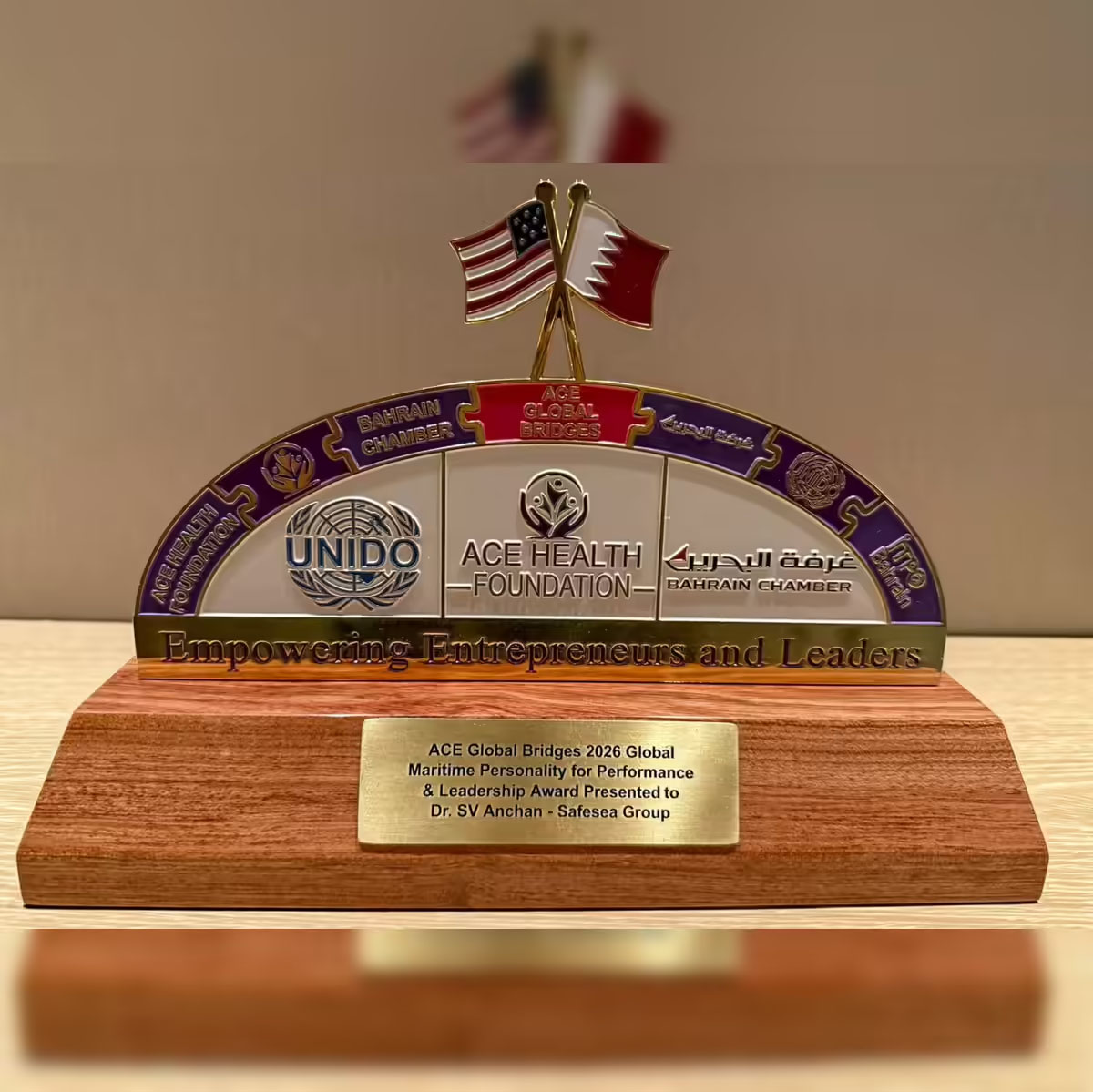 Chairman of maritime company Safesea Group Dr. SV Anchan was honoured with the ACE Global Bridges 2026 Global Maritime Personality For Performance & Leadership Award by the United Nations Industrial Development Organisation (UNIDO) along with the Bahrain Chamber of Commerce and Industry and Washington-based ACE Health Foundation.