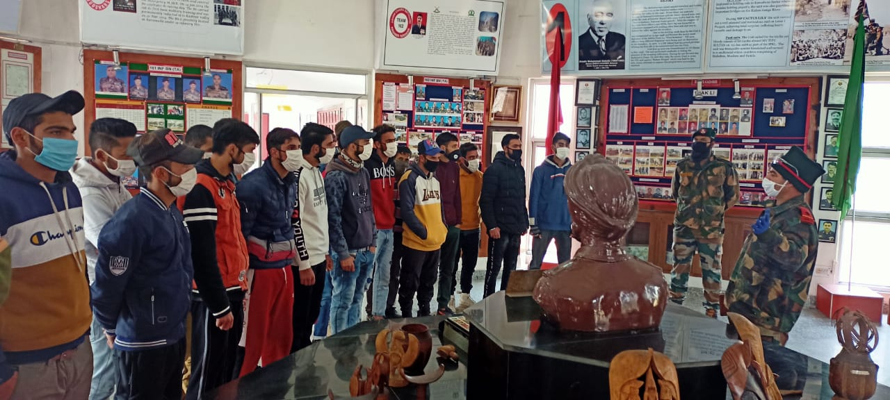 SHOPIAN: As part of our constant endeavour to create awareness on Indian Army amongst the young impressionable minds of the area, a Confidence Building Tour of students from various schools of Watchi was organised to JAK LI Regimental Centre on 21 November 20 . A total of 28 students and two teachers attended the tour.
