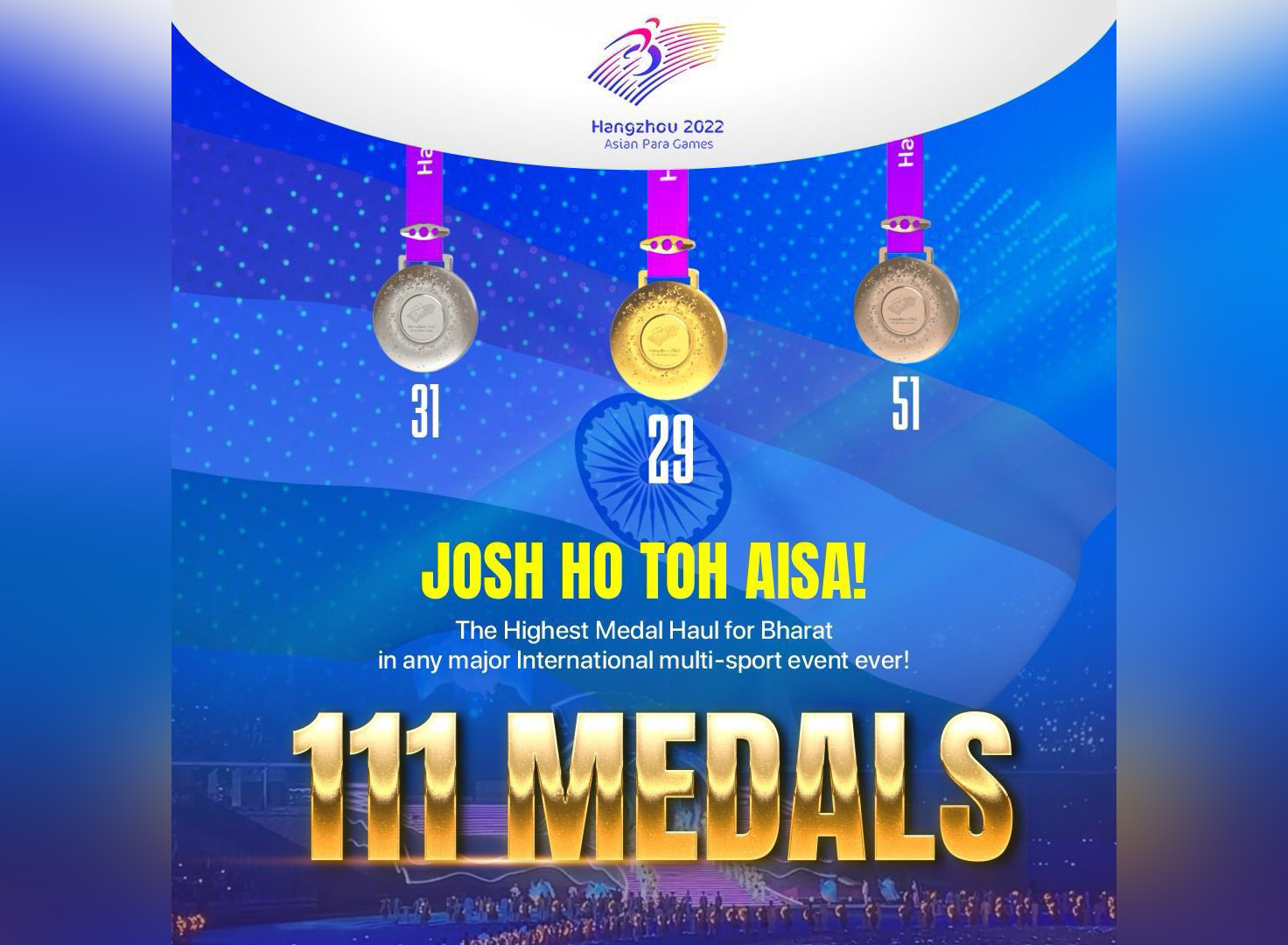 Hangzhou, Oct 28: Indian para athletes created history on Saturday as they ended their Hangzhou Asian Para Games campaign with an unprecedented 111 medals, the biggest haul for the country in any major international multi-sport event.