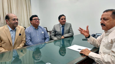 A delegation of IDA led by its Past – President Prof. Mahesh Verma, Director – Principal, Maulana Azad Institute of Dental Sciences, New Delhi, Dr. Ashok D. Dhoble, Secretary General IDA and Senior Dental Specialist Dr. Rajiv Kumar Chugh today called on Dr Jitendra Singh and apprised him of, what they described as, discrimination against the doctors from Dental faculty in comparison to the medical professionals from other streams / specialties. They complained that, even as the Government of India had, through a recent order, enhanced the retirement age of both the teaching as well as non-teaching doctors to 65 years, the same order had not been implemented in case of the doctors belonging to the dental stream.