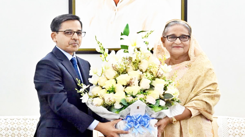 DHAKA, Jan 8: The Indian High Commissioner in Dhaka Pranay Kumar Verma on Monday called on Bangladesh Prime Minister Sheikh Hasina and conveyed the greetings on behalf of his country on her re-election and the victory of her Awami League party for the fourth straight term.