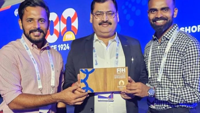 Muscat (Oman), Nov 8: During the FIH Congress in its centennial year, International Hockey Federation (FIH) President Tayyab Ikram and French Hockey Federation President Isabelle Jouin honored Hockey India with a special award, recognizing the Indian Men’s Hockey Team’s historic Bronze Medal triumph at the Paris Olympic Games.