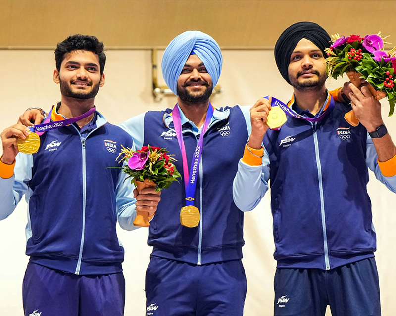 The team of Sarabjot, Cheema and Shiva Narwal narrowly beat the Chinese team to take the top podium, earning India’s fourth gold medal from the shooting ranges.