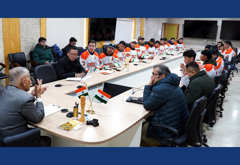 LEH, Feb 27: The Indian men’s Ice Hockey team recently visited the Lieutenant Governor of Ladakh, Brigadier (Dr) BD Mishra (Retd), at the Lt Governor’s Secretariat. This follows their participation in the Asian Winter Games in Harbin, China, where the unranked team competed against higher-ranked teams, securing a win against Macau in one of their four matches.