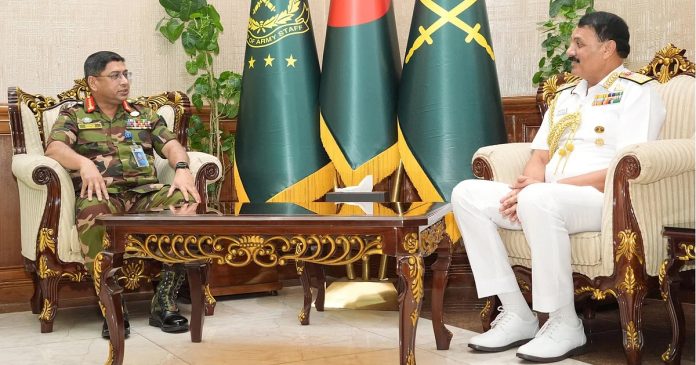 DHAKA, Jul 4 : Indian Navy chief Admiral Dinesh K Tripathi has met with the newly-appointed army chief of Bangladesh General Waker-Uz-Zaman, and discussed the robust bilateral ties and explored new avenues for cooperation between the two armed forces.