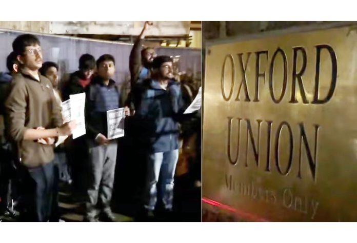 Chants of ‘Bharat Mata Ki Jai’ and ‘Oxford Union stands with terrorism’ could be heard during the protests.