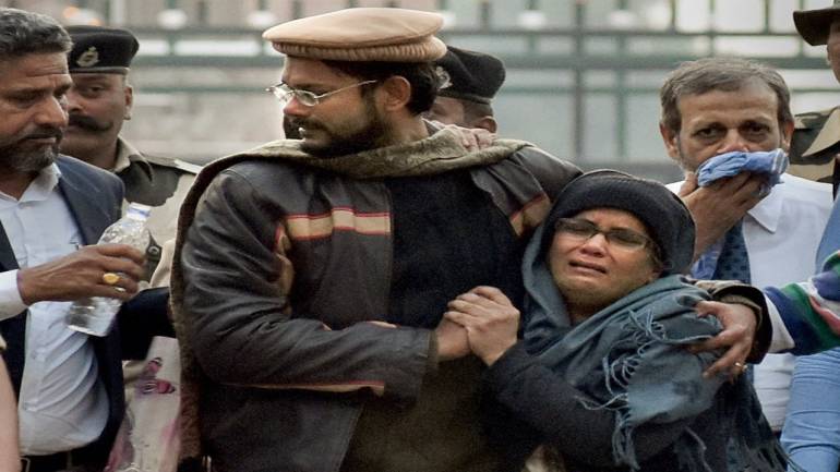 The 33-year-old, who was sporting a beard and wearing a cap, could be seen consoling his mother, Fauzia, and wiping her tears as she repeatedly hugged and kissed him.