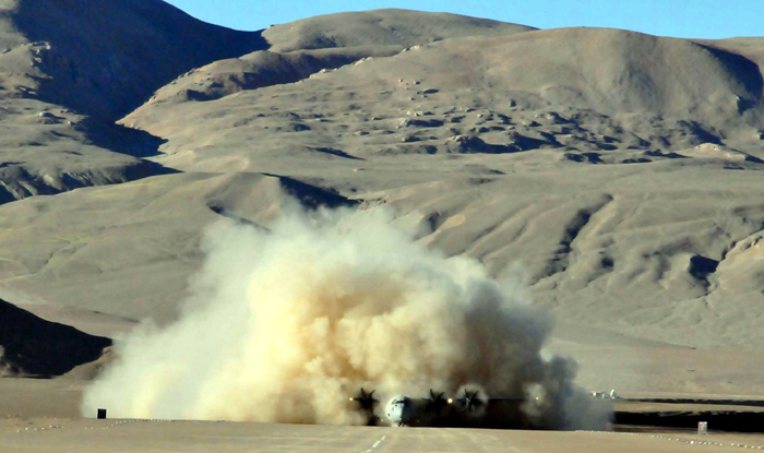 The tactical transport aircraft of the special operations squadron is capable of undertaking quick deployment of forces in all weather conditions, including airdrops, besides landing on unprepared or semi-prepared surfaces. It created history today by landing at this altitude and hostile terrain conditions.