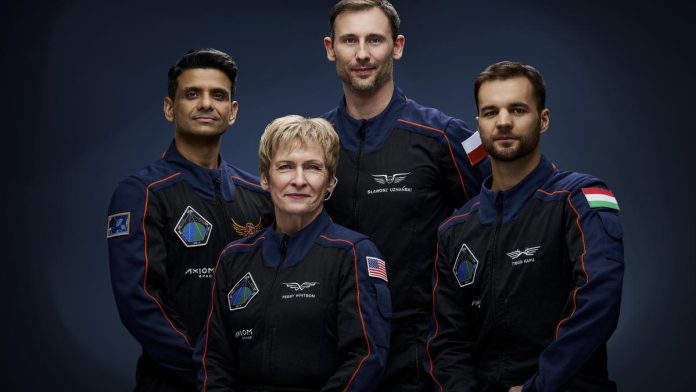 The Axiom-4 commercial mission is led by Commander Peggy Whitson, with Mr. Shukla as mission pilot and Hungarian astronaut Tibor Kapu and Poland’s Slawosz Uznanski-Wisniewski as mission specialists.