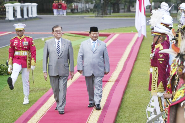 Indonesian President Prabowo Subianto welcomed Ishiba at the Bogor presidential palace, just outside Jakarta, along with greeters wearing Indonesian traditional clothes and a military band that played both national anthems before the two leaders — both former defence ministers — held a bilateral meeting.