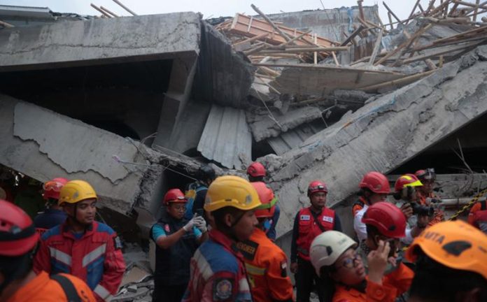 Syafii’s agency said at least six children are alive under the rubble, but the search has been complicated with the slabs of concrete and other parts of the building remaining unstable. Heavy equipment is available but is not currently being used due to concerns that it could cause further collapse.