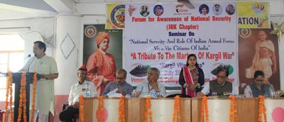 UDHAMPUR, July 26: A seminar on “National Security and Role of Indian Armed Forces viz.a.viz citizens of India” was organised by the Forum for Awareness of National Security (FANS) at Shivalik College of Education, Udhampur in collaboration with “Poorav Sainik Parishad” for paying tribute to the martyrs of Kargil as well as different wars on the occasion of VIJAY DIVAS.