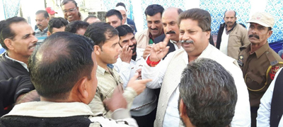 PCC leader Raman Bhalla interacting with people of Bahu Fort in Jammu on Thursday.
