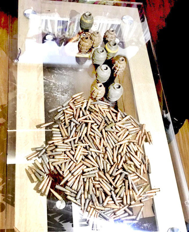 A golden colored Chevrolet Tavera car (JK01M-0056) was stopped for checking. Aboard it was a woman. She was searched by lady police personnel present at the naka. A bag in her possession was searched from which 20 grenades along with a large cache of ammunition were recovered.