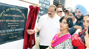 Inaugurating Examination Hall Block of Government High School at Chak Largen Zone Gandhi Nagar in Bajalata Panchayat, constructed under Rashtriya Madhyamik Shiksha Abhiyaan (RMSA), Rana said this will go a long way in meeting the requirements of students.
