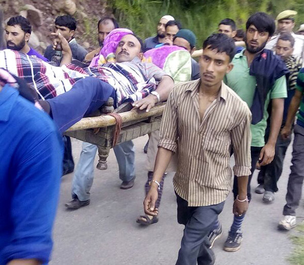Injured SPO Gul Mohammad being carried in a ‘Palki’ from Sangh to Basantgarh on Friday morning. — Excelsior/Rakesh By Daily Excelsior - August 8, 2015 Share FacebookTwitterWhatsAppPinterestLinkedinCopy URLTelegramEmailTumblrReddItPrintKoo Injured SPO Gul Mohammad being carried in a ‘Palki’ from Sangh to Basantgarh on Friday morning. — Excelsior/Rakesh Injured SPO Gul Mohammad being carried in a ‘Palki’ from Sangh to Basantgarh on Friday morning. — Excelsior/Rakesh Follow our WhatsApp channel