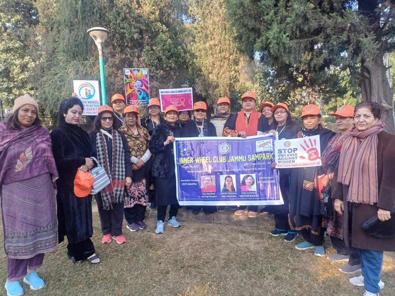 JAMMU, Dec 7: Members of Inner Wheel Club of Jammu Sampark participated in a rally at Greenbelt Park, Gandhi Nagar as part of the UN initiative “Orange the World”, aimed at ending violence against women and girls at workplaces and homes. Around 100 members, including 20 ladies from Inner Wheel Club Sampark Jammu, carried placards and banners with slogans promoting a future free from violence. The rally concluded with all participants taking a pledge against violence. Club President Rattan Prabha congratulated the members for their enthusiastic participation and commitment to the cause.