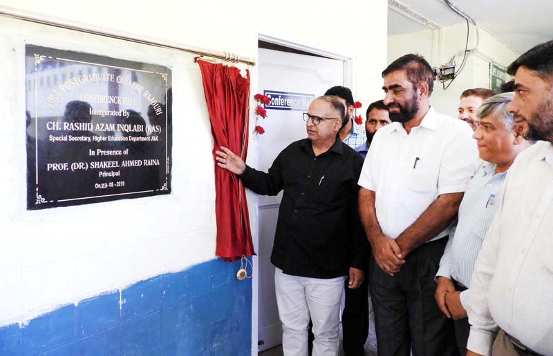 RAJOURI, Aug 26: Special Secretary Higher Education, Rashid Azam Inqulabi today visited Government P.G. College, Rajouri and inaugurated the newly built conference hall in presence of Principal Prof.(Dr.) Shakeel Ahmed Raina, staff and students of the College.
