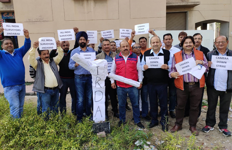 JAMMU, Nov 19: Insurance Surveyors of J&K here today under the leadership of Ravi Dhar, Rajesh Gupta and Sudarshan Choudhary staged a protest demonstration against Insurance Regulatory and Development Authority of India (IRDA).