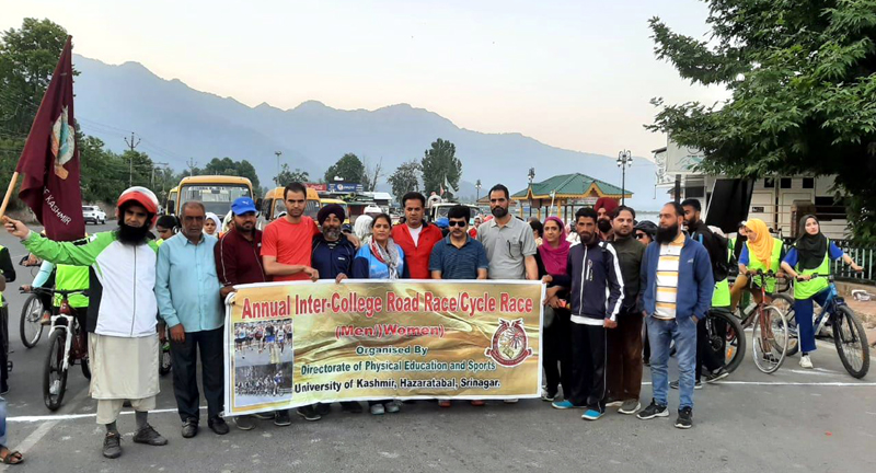 SRINAGAR, June 7: The Directorate of Physical Education and Sports (DPES), University of Kashmir, organised an inter-college cycle race (women), which started from Nishat Garden and culminated at Kashmir University’s Rumi Gate, here today.