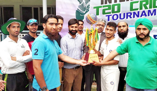 International cricketer Parvez Rasool presenting winning trophy to skipper of SP School at Sher-e-Kashmir Stadium in Srinagar. By Daily Excelsior - July 18, 2018 Share FacebookTwitterWhatsAppPinterestLinkedinCopy URLTelegramEmailTumblrReddItPrintKoo International cricketer Parvez Rasool presenting winning trophy to skipper of SP School at Sher-e-Kashmir Stadium in Srinagar. Follow our WhatsApp channel