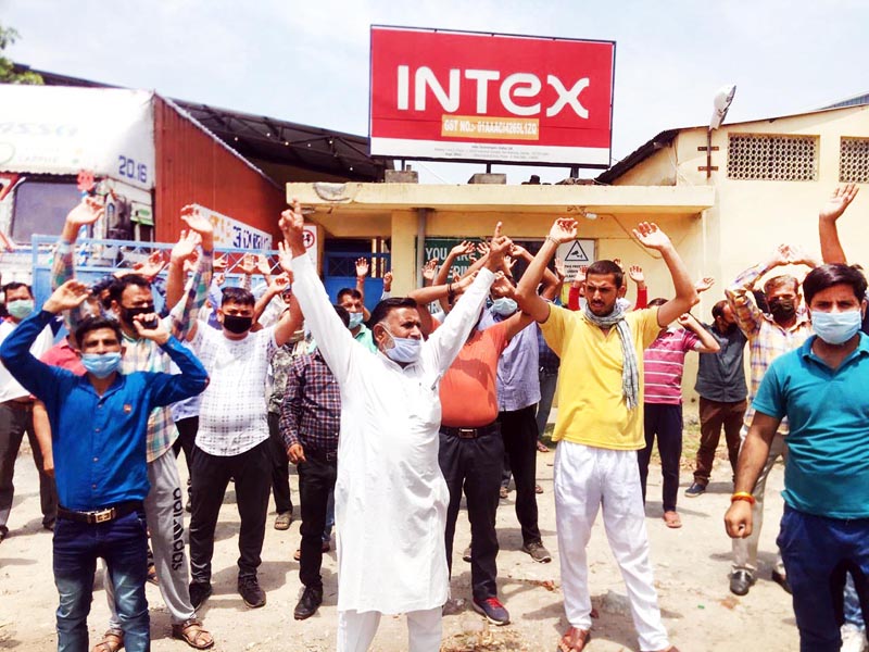 SAMBA, June 3: The workers of INTEX Industries Bari Brahmana today staged a strong protest demonstration in the industrial complex against the industry management demanding the release of the three months pending wages.