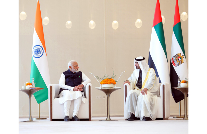 The two leaders witnessed the exchange of eight agreements including a Bilateral Investment Treaty, MoU on cooperation in the field of electrical interconnection and trade and an Intergovernmental Framework Agreement between India and UAE on the India-Middle East Economic Corridor.