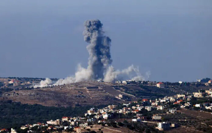 The attacks set a building ablaze in central Beirut’s densely populated Aicha Bakkar area, engulfing the top two floors. There were no immediate reports of casualties.