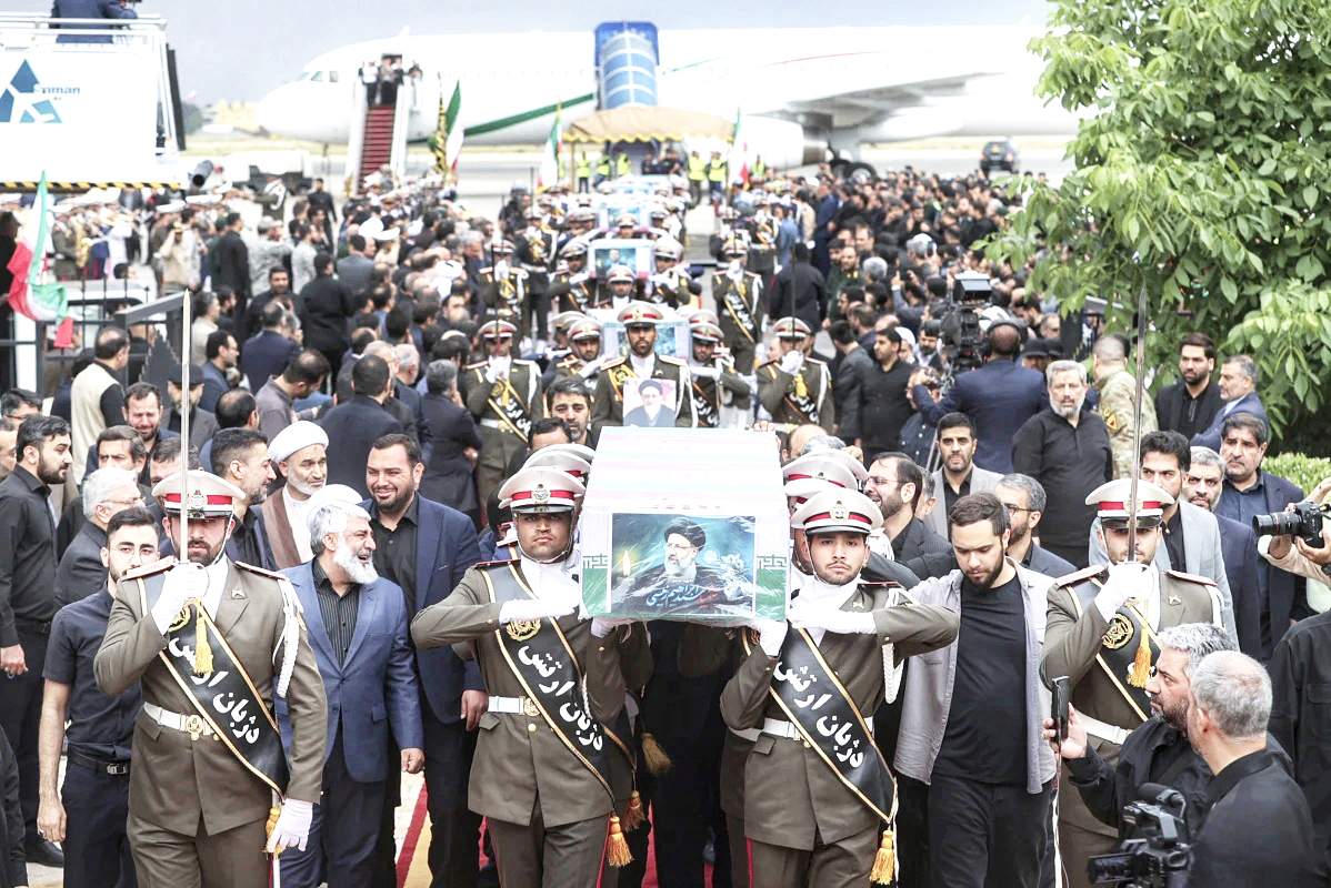 Ayatollah Ali Khamenei began the service at Tehran University, the caskets of the dead draped in Iranian flags with their pictures on them. On the late President Ebrahim Raisi’s coffin sat a black turban — signifying his direct descendance from Islam’s Prophet Muhammad.