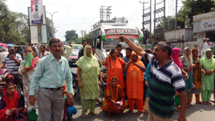 A large number of people mostly women squatted on the road and paralyzed the movement of vehicular traffic for more than one hour.