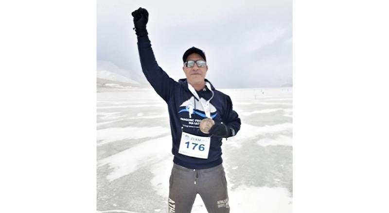 JAMMU, Feb 23: Ironman Kapil Arora created history again by participating in India’s first Frozen Lake Marathon at Pangong Lake in Ladakh on February 20 and entered his name in the ‘Guinness Book of World Records’ for the second time.
