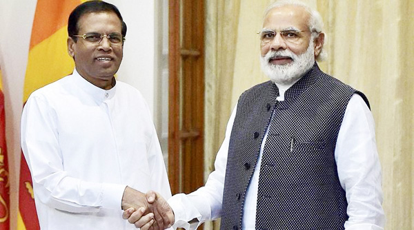 “Neighbourhood first! PM @narendramodi met Sri Lankan President, Maithripala Sirisena, on his 5th visit to India as President, on the sidelines of the #ISA. Leaders exchanged views on developmental cooperation, among other areas of bilateral cooperation,” Ministry of External Affairs Spokesperson Raveesh Kumar tweeted. (AGENCIES)
