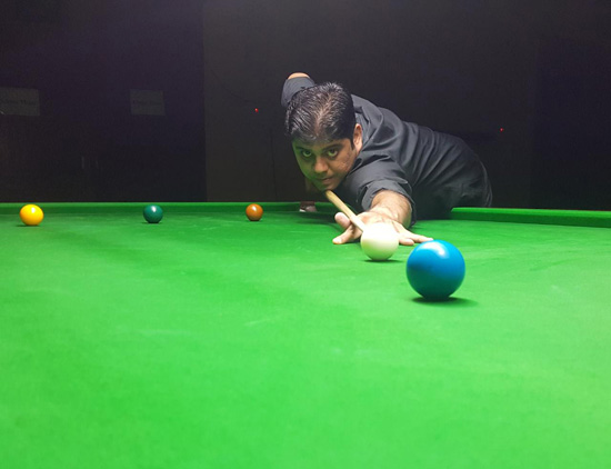 Cueist Ishuk Chowdhary in action at Billiards Hall in MA Stadium on Wednesday.