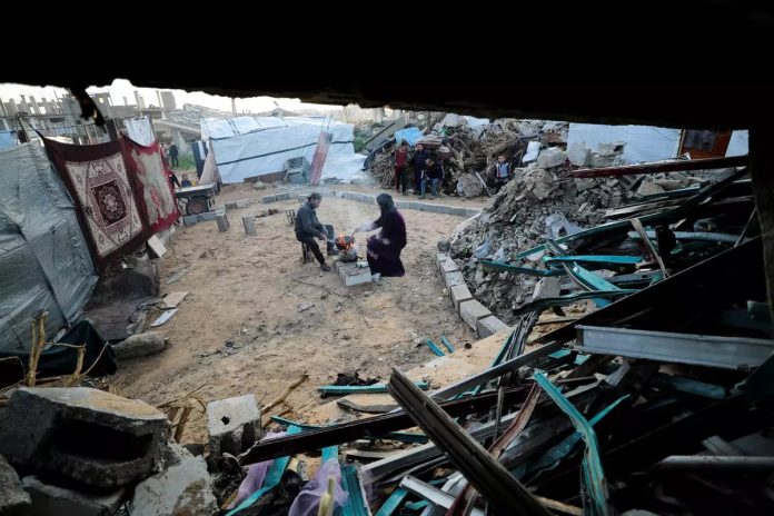 Israeli bombardment pounded large areas of Gaza to rubble and displaced some 90% of the population. (AP)