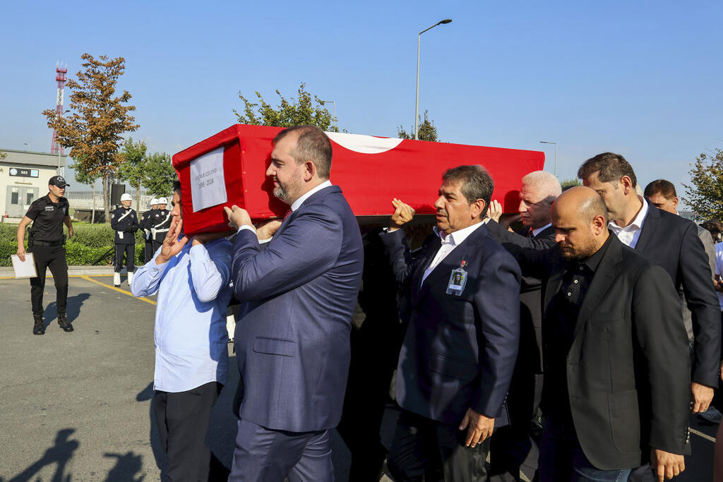 Draped in a Turkish flag, the coffin carrying her remains was carried from a hearse to a hospital in Didim by six officers in ceremonial uniform. Her funeral is due to be held in the coastal town in western Turkiye later Saturday.