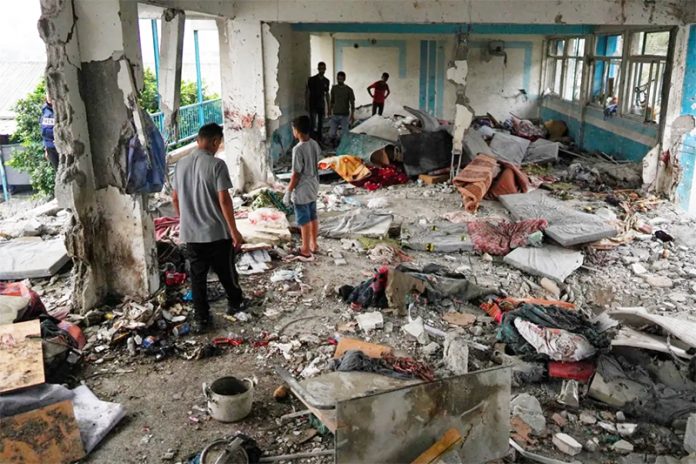 GAZA, Sep 11 : An Israeli airstrike killed at least 14 people, including two children, when it hit a UN school sheltering displaced Palestinian families in central Gaza on Wednesday, hospital officials said.