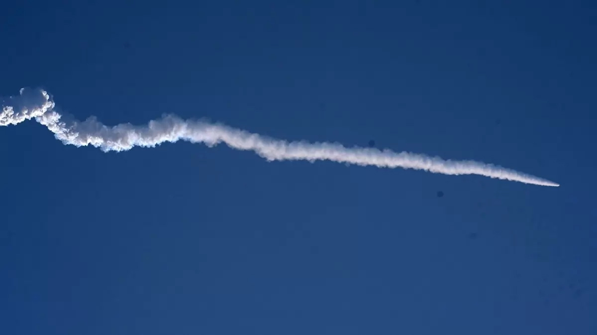 ISRO's Small Satellite Launch Vehicle SSLV-D2 carrying EOS-07, Janus-1 and AzaadiSAT-2 satellites after its launch from the Satish Dhawan Space Station, in Sriharikota.