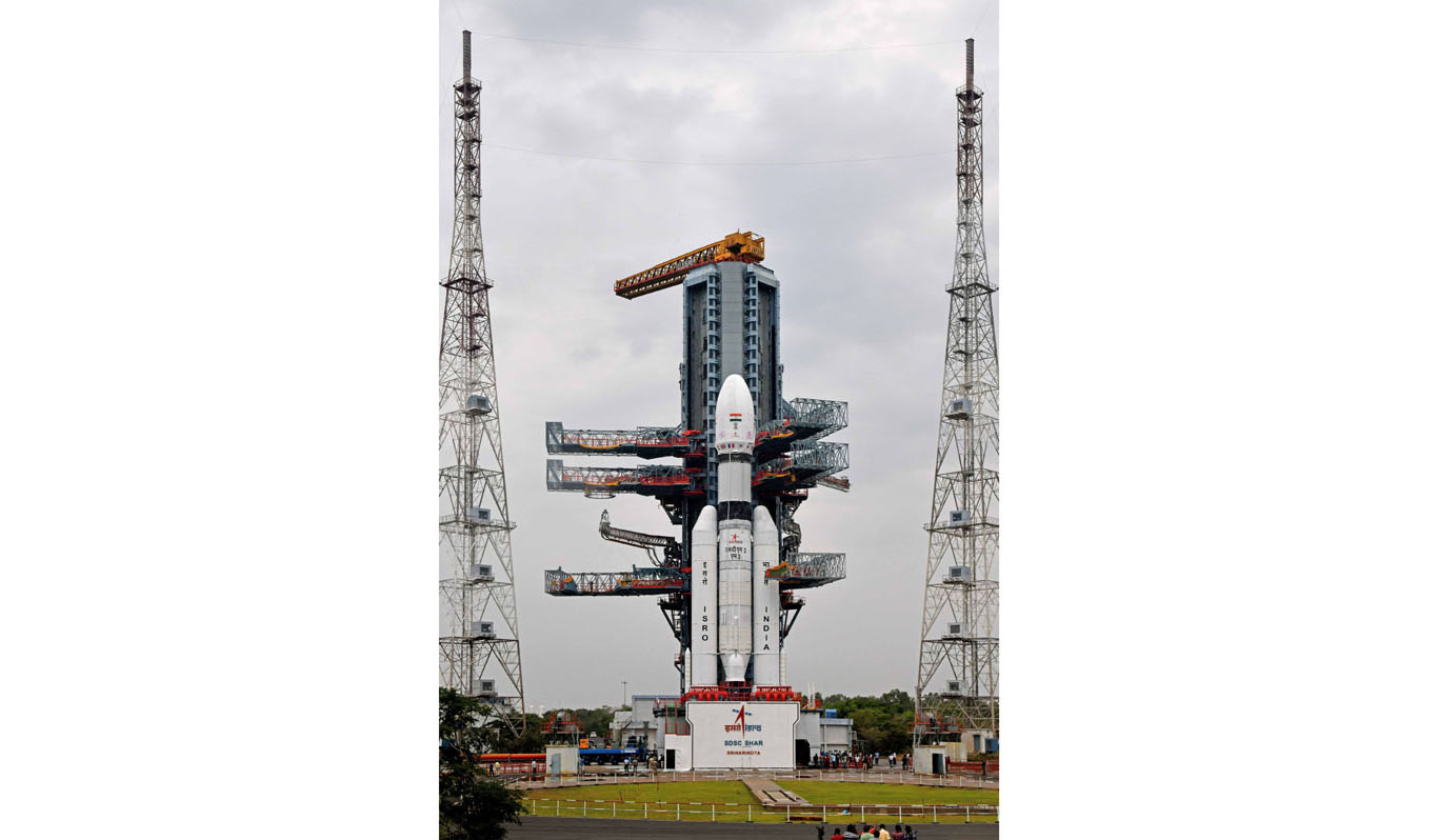 The rocket has a lift-off mass of 640 tons, and the 43.5-meter tall three-stage launch vehicle gives India full self-reliance in launching heavier communication satellites that weigh up to 4000 kg into Geosynchronous Transfer Orbit (GTO). (AGENCIES)